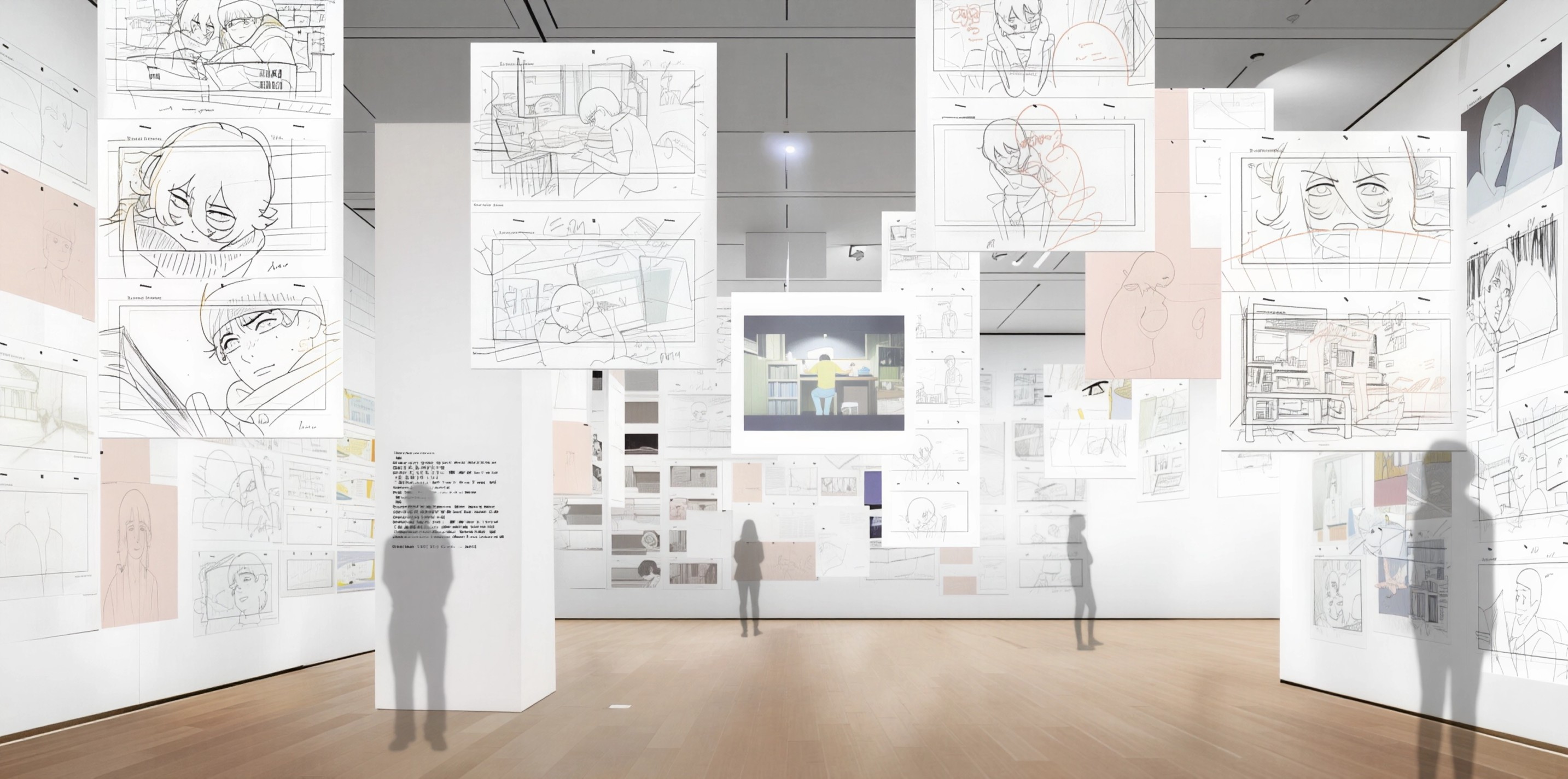 The exhibition highlights Fujimoto’s storytelling brilliance and Oshiyama’s animation artistry. Fans can explore a tunnel of evolving art that traces the journey from rough storyboards to finished animation, complemented by commentary from the director himself.
